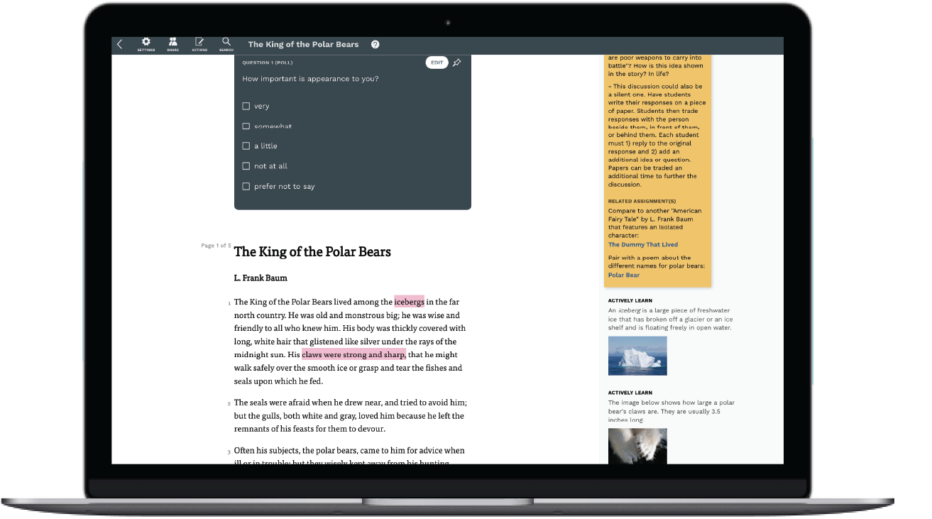 Actively Learn es una plataforma de alfabetización en línea que empodera a los profesores con herramientas de instrucción, que fortalece la comprensión profunda de los textos por parte de los estudiantes.